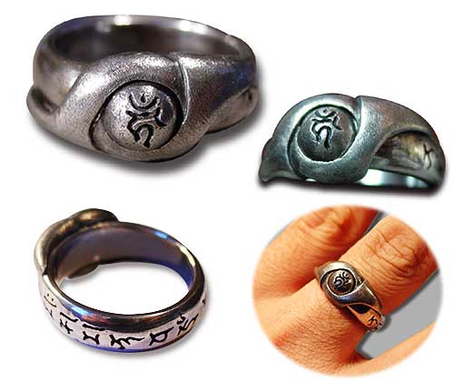 説明 風車をイメージしたトップは魂のパワーが中心に集まり大きな力を得るさまを表現。3つのパーツから構成。鏡面仕上げのリングに別パーツで荒目仕上げのトップ部分と、梵字を刻む半球を取り付けています。全体的に燻よごし仕上げです。