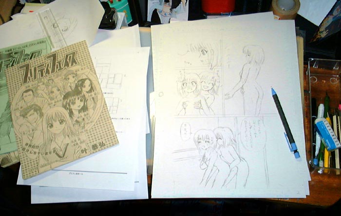 夏コミ新刊2冊を目指し、既に印刷所への入稿を済ませているハーマイオニー本に加え、コピー本としてコミケ当日までの完成を目指しているプリティフェイス本のこと。 昨日のうちにネームを作り終え、けっきょく10ページのマンガを描く事に決定し、現在のところ下描き3ページ完了。 しかしまあ結局普通に由奈攻めのマンガになってしまってるあたりが。