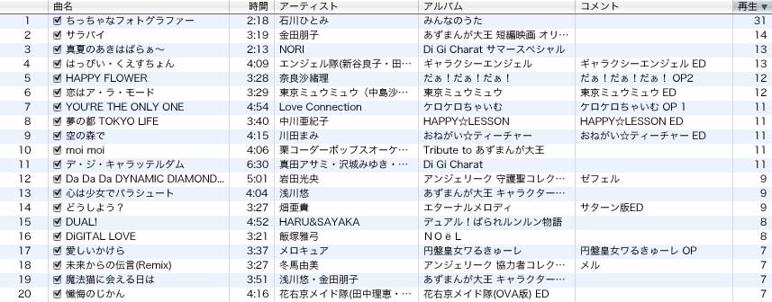 さくらぷらす10月29日記事を見て、自分もiTunesのプレイリストを晒してみようと思ってみたり。