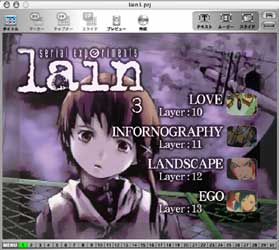 んで、未だに咳が止まらない以外はなんだか体調はいいので、これで明日になってまた悪化しないようにとか祈りつつlainのDVDを作り始めてみる。 今回の背景画像はネットから拾ったけど…こういう画像は大抵JPEGノイズが乗ってるので、それをPhotoshopの『ぼかし(詳細)』でうまいこと潰して使用。 ついでに、玲音が作ったお父さんの画像もあげてみる。 お父さん、胴体しか無いというのがポイント。