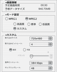 それにしても同じ設定でファイルサイズが違うというのは謎だが… Firewire版ではハードエンコの質が向上したから、3.6MbpsくらいでUSB版の4Mbps並の画質になるという事か、それとも、単に音声込みのビットレート表記に変わったとか…?
