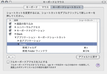 …『新規 Finder ウインドウ』に『コマンド+シフト+N』を割り当てることは出来たのだが、『新規フォルダ』に『コマンド+N』を割り当てられない…