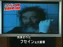 フセインが生け捕りされたというニュースが!! テレビ各局は、放送予定を変更して記者会見の様子を放送してた。 捕まったのが日本時間の土曜朝とか日曜朝とかじゃなくて良かったよ(苦笑)。 いやそれはともかく、…なんかもう、地下の穴ぐらでひっそりと過ごしていただけあって、この姿見せられてもフセインだって分からないね。 まあともかくよく捕まえる事が出来たもんだ。