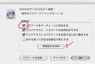 『パスワードをキーチェーンに追加する』にチェックを入れて『環境設定を保存』を押したら『OK』。