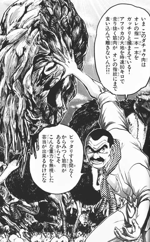 …ところで、新鮮なダチョウ肉はこんな事が出来るらしいので、…とりあえず指で肉に触れてみた。