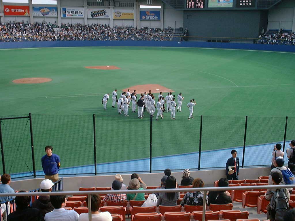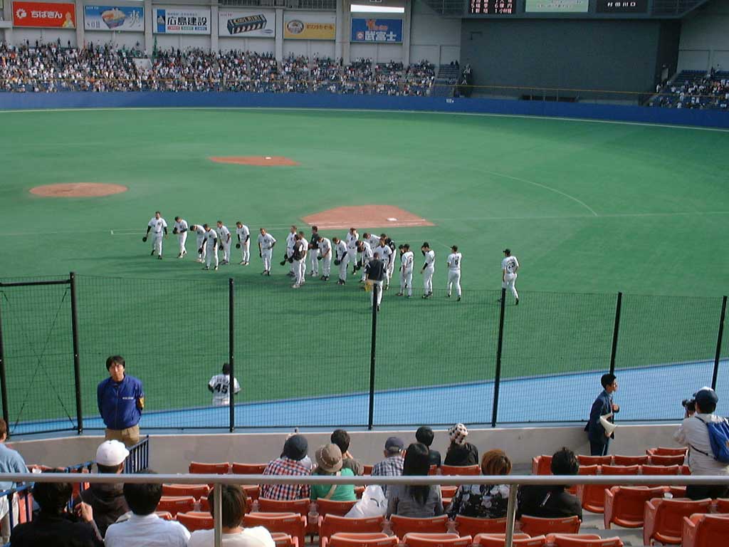 3塁側ではヒーローインタビューやってる中、監督をはじめとするマリーンズの面々が出てきて頭を下げるのを見た時は、スタジアムに足を運ぶ事は滅多にないんで、ただ「ああ、負けたときってこういう事するのか」程度にしか思わなかったんだが、シーズン途中でこういう事するのって、実は前代未聞だったんだね。