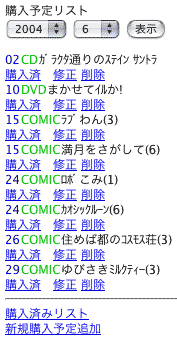 購入予定リストの閲覧、修正を携帯から行えるようなシステムを作ってみた。