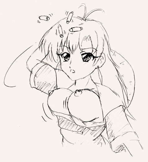 ぐぐって来た人の期待を裏切らない為に、頻繁にぐぐられる検索ワードに関連した絵を描いてみるという企画を考えた。 今回のお題は『おっぱいリロード』(現在、Googleで4位)。 軽くおっぱいリロードをやってみたら2つだけ弾丸じゃないものを出してしまった琉朱菜の図。 …次回以降この企画があるかどうかは、ヲイラの気分次第。