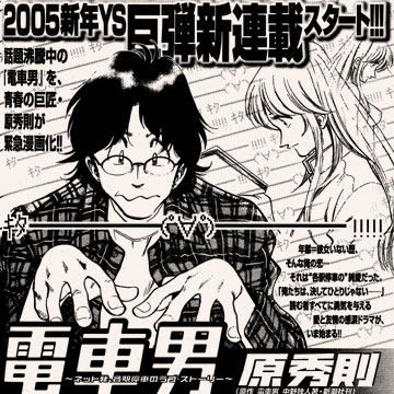 …ヤングチャンピオンとチャンピオンREDでの連載は知っていたが、…ヤングサンデーでも連載開始するのか! しかも、描くのが原秀則! …あだち充せんせい並に決まった顔しか描けない作家だけど、…電車男、いつもの原せんせいのキャラにメガネ装着しただけか…まあ、普段の絵柄からしてキモオタ描くの苦手そうだしね。 …ときに、電車男漫画についてちょっと調べてみたら、こんなのを発見。電車男がマンガになった。 チャンピオンレッドに掲載