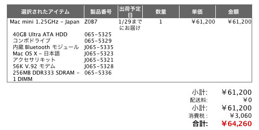 で、Mac miniの気になる発売日だが、…日本では1月29日から。