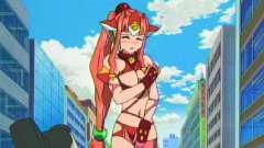 …ともかく、全裸になってパワーアップした巨乳が敵を攻撃するも、完全に倒しきれず、『アルティメットガール・微乳』が再び変身、敵の弱点である股間にそそり立つモノを激しくシェイク…ああいや、攻撃して撃破!