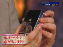 近頃、iPodを始めとしたアップル製品がテレビに登場する事がめっきり増えたが、 きょうのワールドビジネスサテライトでもiPodにまつわる話が出ていた。 iPodといえば、背面の鏡面仕上げステンレスが特徴の一つだけど、その背面ステンレス、新潟で生産されているんだそうで、その製造工程が紹介されたんだけど… 町工場の職人さんが1個ずつ手作業で磨いてる!!!!? デジタル精密機器の極みであるiPodが、こんなにアナログな手法で作られていたとは… けっこう衝撃的な事実だったよ。