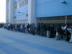 列は、外野席のチケット購入、外野席の入場待ち、内野自由席の入場待ち、そして何故か指定席の入場待ち、などなど様々な行列が交錯していた。