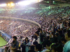 で、予想外の人の集まりのあまり、当初はAゲートしか開けてなかったものの、このままじゃー試合開始までに全員は入れなさそうだってんで内野側全部のゲートを開けちゃったら、蛇行してた行列が途端にコミケ列崩壊を起こして一斉にゲートへなだれ込み、真面目に並んでた人が列整理してた職員に食って掛かったりするトラブルも起きたりした。