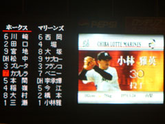 ……でもまあ1点返されたくらいではまだ「うわ、また劇場開始か!」くらいで済んだんだが、その後もヒットを許すわコバマサ自身のエラーで傷口を広げるわで、3失点してなお2死2、3塁の大ピンチ…ここでズレータを敬遠するのはまあ当然だが、その次のカブレラに対し…よりにもよってストレートのフォアボール……さっきまで祝勝ムードに湧いていたスタジアムは落胆と怒号に満ち溢れた…