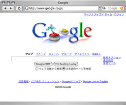 トリノ始まって以来、googleのロゴが日替わりで各オリンピック競技仕様になっていたが… 一体いつになったらカーリングが出てくれるのかと思っていたが、今日出た。 googleのロゴ、oの字がそれぞれ図ったように赤と黄色なんでピッタリだね。