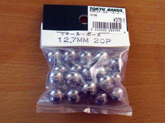 以前購入したスペースワープだが、…1セットにつき入ってるボールが3個だけなのはちょっと寂しい…とか思っていたら、東急ハンズで、それと同じ直径0.5インチの鉄球が売られているのを発見して、購入してみた。