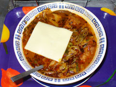 そして、独自にスライスチーズとから揚げを投入してみた。トッピングは安価に投入する事が出来るんでこのへんはいいね。