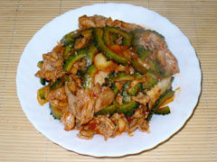 という事なので、スーパーでゴーヤ買ってきて、ゴーヤと豚キムチの炒め物作って喰った。