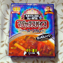 近所のコンビニに、マジックスパイス・チンギスハーンが入荷してたんで買ってきた。 名前から想像できる通り、ひつじ入りマジスパなんだが…やっぱりスープカレーとひつじは実に合うねえ。特に、モヤシとの組み合わせは最強。 マジックスパイス下北店でも一瞬、ひつじ入りの限定メニューがあったんだが、喰えなかったんだよなあ…レギュラーメニューになってくれる事を猛烈に希望。