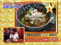 先週に引き続き、ベスト30のいよいよ上位6位が発表されたが… マジスパはいきなり6位で紹介されたが、グルメレポートは省かれ、一瞬紹介されただけで終わった。 これはマジスパのマスターもガッカリだろうなあ。 ときに、3位で紹介されたこのカレーはすごく喰ってみたい気になった。