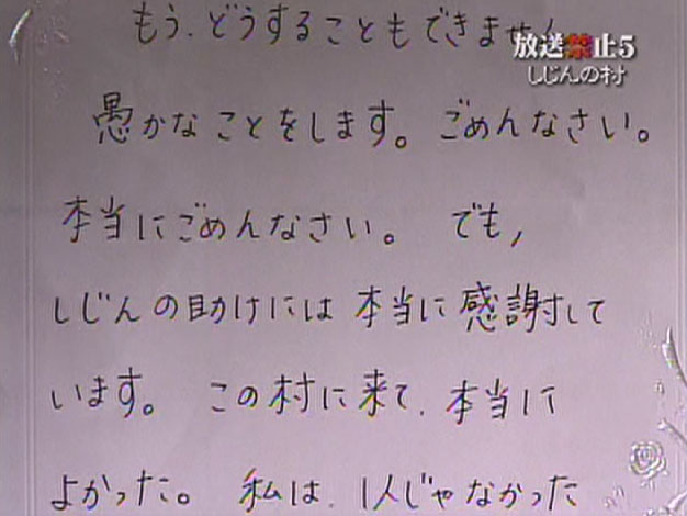 『でも、』が無いと、しじんに対する感謝は『孤独に死んでいくのではなく、仲間が居る中で死なせてくれた事』になってしまうだけにすごく重要な事だが、…この遺書を改竄するとしたらしじん以外に有り得ないんだが、しじんが毛筆で書いている字と比較しても、同じなのかどうか良く分からないし、そもそもしじんの文章、句読点を打たないんだよね…
