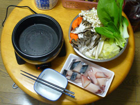 ニューハンディ鍋を使って、こんどは鍋料理をやってみた。 お好み焼き作る時にはまあ問題無い温度だったんだが、鍋をやるのにはギリギリの火力だな… まあでも、喰ってく傍から順次食材をぶち込んでいけば、煮えるペースが喰うペースに追い付いてたし、なんとかなったが。 さすがにこの量は喰い切れなかったんで、残りは明日スープカリーにして喰う予定。