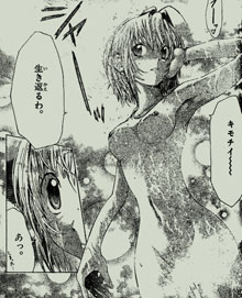 マリンハンター。 さいしょに絵を見たとき、微妙に安西先生っぽいなあとは思ったが…←乳の出しっぷりも安西先生っぽいぞ!このエロ路線は今後も続くのか? ハヤテ! 冒頭で鷺ノ宮母子によるサービスカット! これは美味し過ぎる! …あと、また名前だけで姿が出てこないキャラが増えた…紫子姉さまって…… あいこら。 これっきりにするのが微妙に勿体ないキャラだったなぁ。 妖逆門。 …なにこのガンツみたいな展開?