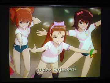 配信開始されたので、さっそくアイマスカタログをダウンロードし、赤ちゃんシリーズのアクセサリを買った。 で、早速、ばかりぼんずに赤ちゃんシリーズフルセットを装着。 そして、流行1位がビジュアル、3位がボーカルなのに、赤ちゃんシリーズのおかげでボーカルイメージばっかりパラメータが上がった状態でオーディションに無理矢理参加して、でもなんとか合格した。←とりあえず、偶然面白いカットが出来てしまったので貼ってみる。