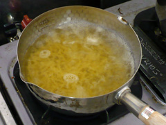 パスタが茹で上がったら、フライパンに油を落として加熱。
