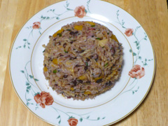 あんこの量を更に減らして、炒める際にレモン果汁やおろしショウガあたりを追加すればけっこう食べられるモノに仕上がる気がするが、たぶんもう作らなさそう。