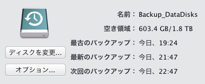 …しかし、最初のバックアップで1.2テラのデータを転送したんだが…さすがにすごい時間が掛かった。10時間くらいだったか。