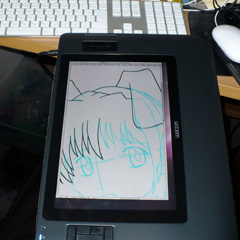 手のひらツールと鉛筆ツールを一番押しやすいボタンに設定して、描く→スクロール→描く…と、こまめに切り替えながら描くと、12インチの液晶でもけっこう快適にお絵描き作業が進められる。