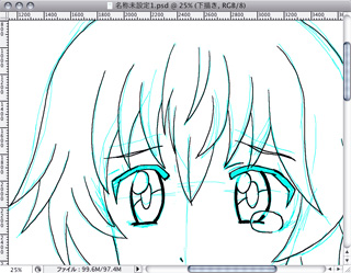 今回は、下描きの段階から液タブを使ってみた。 12インチワイドの大きさだと、B5より縦がちょっと長くて横がちょっと短いくらいのサイズなんだが、…ちょっと大きめの絵を描こうとすると、やはり画面の狭さをちょっと感じるねぃ。 しかも、画面の端はタブレットの精度がイマイチでちゃんと描けないから、有効に使える範囲は更に狭いし… …下描きから描く場合は、まずはウィンドウを全画面表示にして大雑把に描いた後に、各部分を拡大して更に細かく下描きを進める…という風にやっていくのがいいかな。