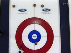 今回の対戦は、前回大会銀メダルのデンマークということで苦戦が予想されたが、序盤からデンマークを追いつめる展開を見せ、そして1点リードの上に後攻で迎えた最終エンド、←最後の日本の1投を残してこの状況、中央の赤いデンマークの石よりも内側に置ければ勝ちというショットを、スキップ目黒が見事に成功させ、8-6で勝利という大金星を収めた!すごいぞチーム青森! ということで、これで予選リーグ通算2勝1敗に。