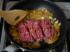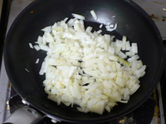 まずは、みじん切りにしたタマネギをフライパンで炒める。