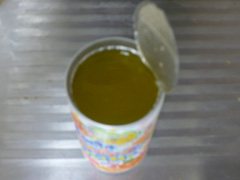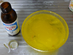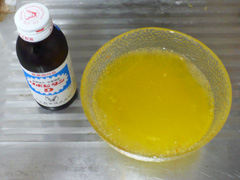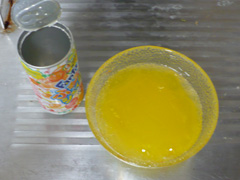 振らずに缶切りで開けるのが流行ってるみたいなんで、自分もやってみた。 器に盛ってみた。 見た目は普通に相当やわいゼリーだが、放置しておくと微妙に泡が湧いてくる。 …このまま喰ってもいいんだけど、より味わいを深める為に、リポD投入! ……なんかゼリーの浮遊感がちょっと面白い事になった。 ともかく食べてみたが、まあ悪くはない。というか結構いける。