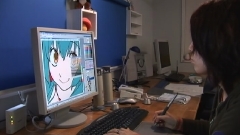 今回のデジ絵の文法は、特番という事で漫画家葉月京を迎えての1時間の放送。 てか、葉月京って女性だったのか。 で、見てみたが、葉月せんせいの作業、紙に下描き&ペン入れをすると、線画のコピーにコピックで色を塗り始めた。 何事かと思ったが、その塗りは、デジタル彩色の際のイメージを伝える為のもので、デジタル作業はそれを渡されたアシスタントがほぼ全てやっていた。最後に葉月せんせいがちょっと修正作業とかはやってたけど。