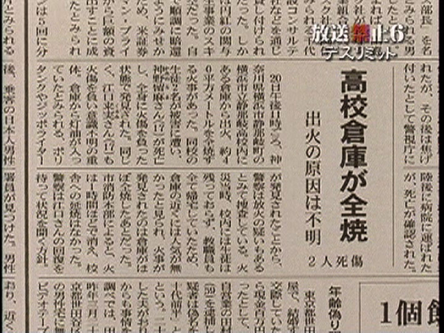 高校倉庫での火事の新聞記事(映像)
