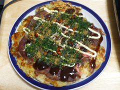 ただ、ジンギスカンのタレはお好みソースと違ってサラサラしているので、あまり掛け過ぎると生地をべちゃべちゃにしてしまうという問題はあったが、これ、ちょっと一工夫してタレにとろみを付けるとかして使えばかなりよさそう!