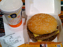 が、ミートパティ、サイズはでかいものの質はそんなに代わり映えが無かった。肉がやや厚めなおかげかマクド独特の肉のパサパサ感は軽減されているとは思うが…