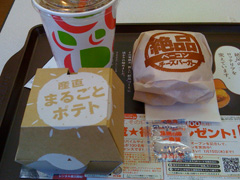 産直丸ごとポテト 買ってみた。 で、食べてみたんだが、…確かになかなか美味いんだけど、単品で中サイズ290円、絶品ベーコンチーズバーガーとのセットで810円という値段設定では、リピーターが付くのかは気になる。 …まあでも、絶品もあのびっくりするくらい小さいサイズでも売れてるみたいだし、けっこうだいじょうぶなのかも?