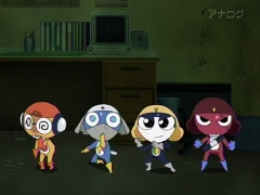 巷では、プリキュアの6年目突入が話題になっていたりするが、…ケロロもついに6年目突入。 …まさかここまで続くとは想像もつかなかったわ。 てことで、OPも新しくなった。 …って、またもやケロッ!とマーチのリメイクかー。 ……これは、8〜9年目辺りにまたOPがケロッ!とマーチになるか? そして6年目最初の話は、第1話をリメイクするという話だった。 …ケロロ初登場シーンとか、本当の1話のシーンがいくらか出たりもしていたが、今更見るとすごい懐かしいな。