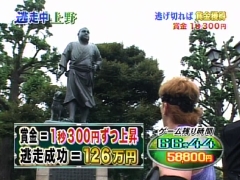 上野動物園にちなんで、4体の動物が賞金リセットボタンを目指してアメ横を歩いている所へ、好物のエサを与えて足を止めさせ、全ての動物を止めたらミッション成功という内容だった。