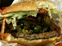 …って、ハンバーガー全重量のうち、半分位をハラペーニョが占めてる印象だ。