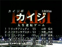 ちょっと前に話題にしたカイジ杯、今日だったんで、大井競馬場のネット中継で見てみた。 馬のゼッケンに『カイジ杯』って書いてあったり、映像の中で映画カイジの宣伝映像が出たり、馬の紹介画面が微妙にカイジっぽかったりしていた。 が、…まあ、当たり前のようにそれ以外は普通に競馬だった。 で、現場では藤原竜也絡みのイベントが色々とあったらしいが…<藤原竜也>さすがギャンブラー、馬券的中12万円ゲット 大井競馬場で「カイジ杯」 当てたんだ。