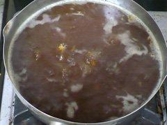 …番組では、タマネギを炒めたりとか、だし用の肉を入れて暫く煮込んで取り出したりとか、そんな事をする組も居たが、調理法はバイト店員でも容易にできる簡単なものに決まっているので、本当にただ煮るだけにした。
