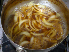 そして、鍋には今回使うだけのタレを入れ、そこにタマネギ投入、ひたすら煮込む。