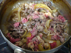 タマネギが煮えたら肉を入れて、更に煮込んだら完成。