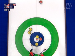 序盤、アメリカに2点スティールを決められた上、更に第3エンドで大量失点を招きかねない大ピンチを迎えたのだが、それを凌ぐと第5エンドで大量3点を取って同点!その後は接戦を繰り広げ、最終エンド、日本1点リードだが後攻はアメリカという局面…最後、アメリカの石1個を残すのみという所でこの状況…アメリカは日本の黄色い石2個を押し出して2点を取る逆転勝ちを狙ったが…